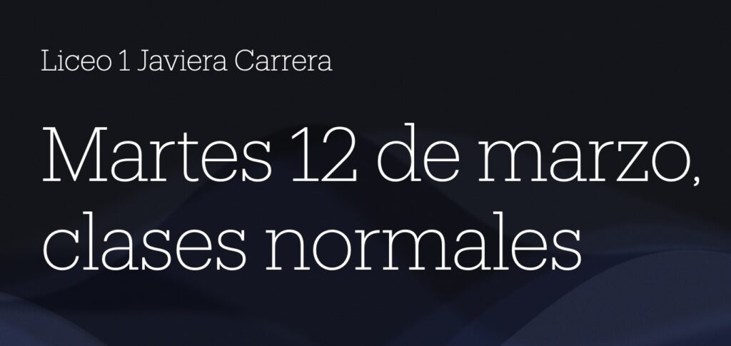 El Liceo N° 1 “Javiera Carrera” trabaja para que sus estudiantes al egresar se desenvuelvan asertivamente y con confianza frente a los desafíos de un mundo en constante cambio. Nuestro objetivo es potenciar liderazgos en un ambiente que fomente el crecimiento personal, junto con la excelencia académica. Nuestra práctica educativa abraza y respeta la diversidad, facilitando que cada estudiante logre ser autónomo, autoconsciente y constructor de su realidad, siempre en armonía con el entorno.