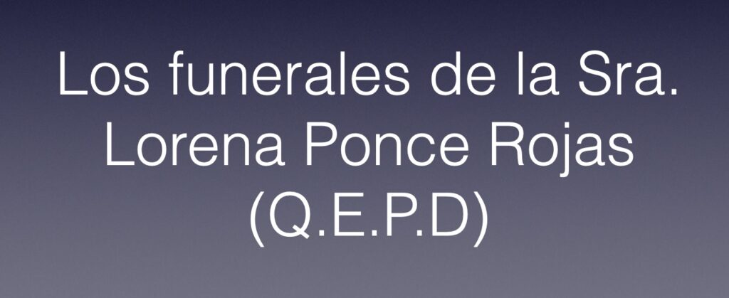 Junto con saludar, compartimos información importante sobre el velorio de la Sra. Lorena Ponce Rojas para quienes puedan acompañar a la familia en estos momentos de dolor. El velorio se realizará el día de hoy 15 de abril en la Iglesia Bautista Esperanza, ubicada en calle Progreso 1393, comuna de San Bernardo, desde las 12:00 hasta las 22:00 horas.Los…