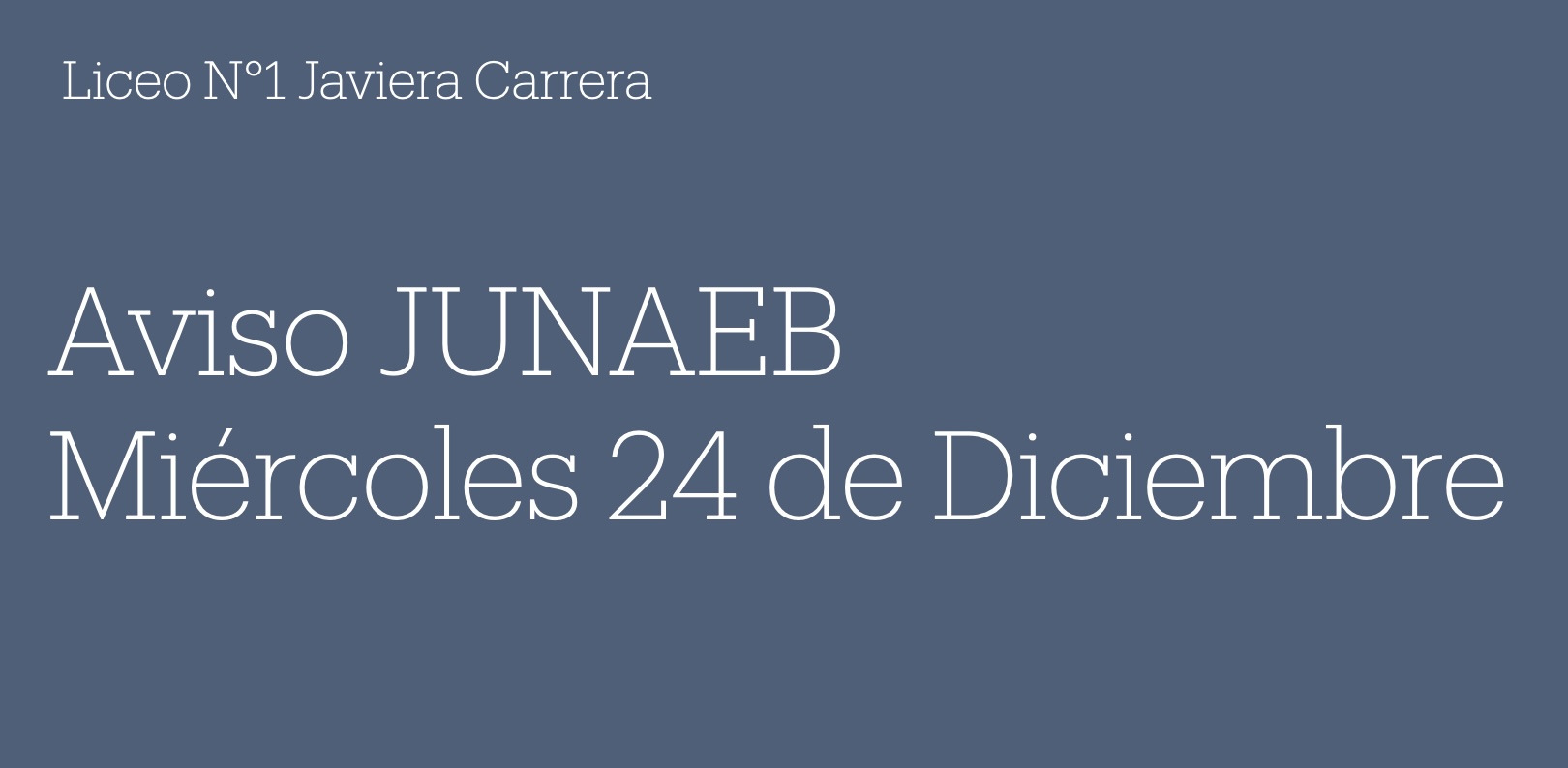 Estimados padres, madres y apoderados, el día de mañana 24 de diciembre por no ser un día de recuperación del calendario escolar no habrá alimentación JUNAEB. Este servicio se retomará desde el 26 hasta el 30 de diciembre.