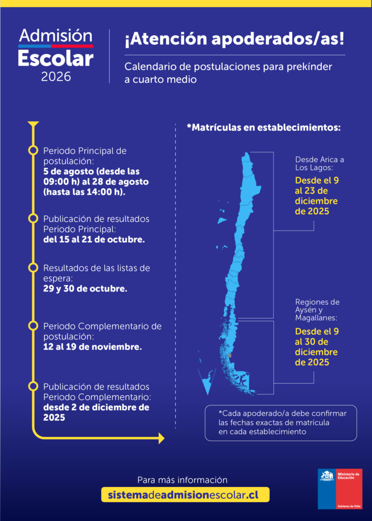 Recordamos que hoy, miércoles 11 de diciembre, es el último plazo para que los y las estudiantes en situación de rezago o repitencia efectúen su matrícula presencial de estudiantes antiguas. El horario para realizar este trámite es de 9:00 a 12:00 horas en el gimnasio del establecimiento.
