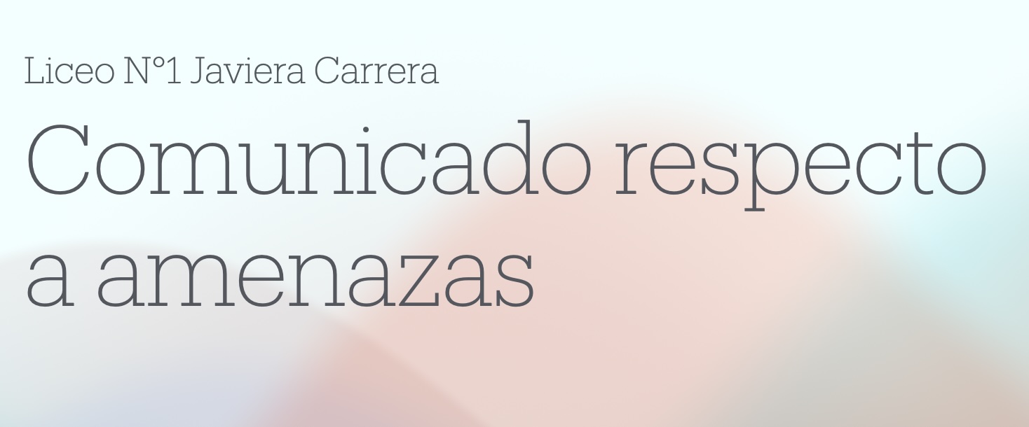 Junto con saludar cordialmente, informamos a ustedes que al finalizar la jornada de la tarde de ayer se detectó una amenaza sobre un posible tiroteo, el cual fue encontrado escrito al interior de los baños del establecimiento.