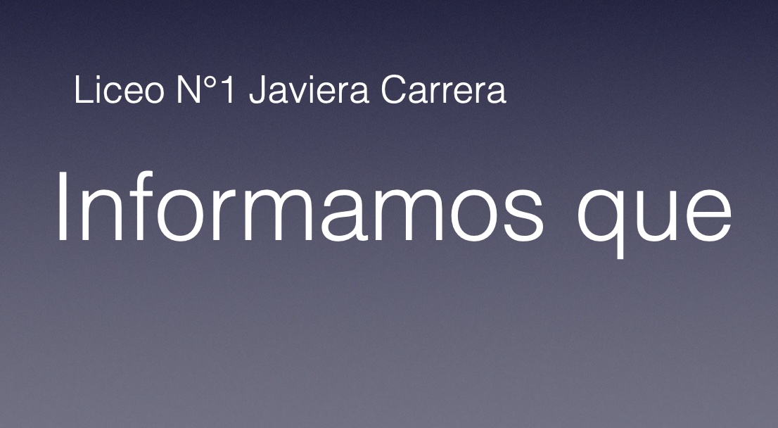 Informamos que hoy miércoles 29 de octubre, la jornada de la mañana se despacha a las 9:15, ya que habrá un consejo de profesores extraordinario para analizar la situación de la profesora agredida el día ayer.