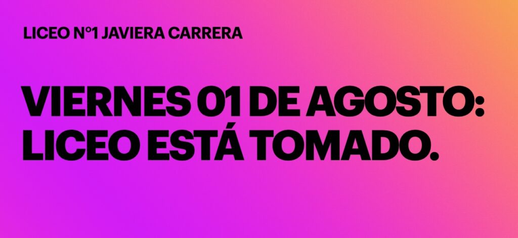 Estimada comunidad,  Informamos que el día de hoy a las 8:30 DICELU nos informa que el Liceo se encuentra en toma por decisión del estudiantado, respaldando dicha información en votaciones internas donde ganó la opción toma hasta el viernes. Es importante aclarar que aunque haya votación la toma del establecimiento está fuera de la normativa…