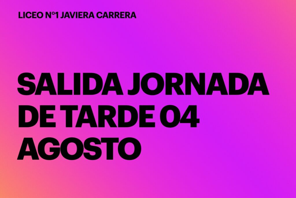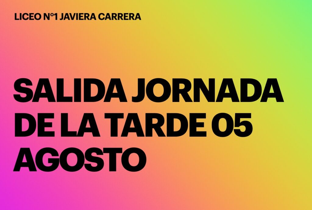 Estimados apoderados, informamos que el día de hoy en la jornada de la tarde, debido a que un grupo de estudiantes abrió el portón sin autorización, saliendo a realizar un corta calle, se adelantó la salida de la jornada de la tarde a las 19:30 hrs.por seguridad del resto del estudiantado.  Los estudiantes que vienen…